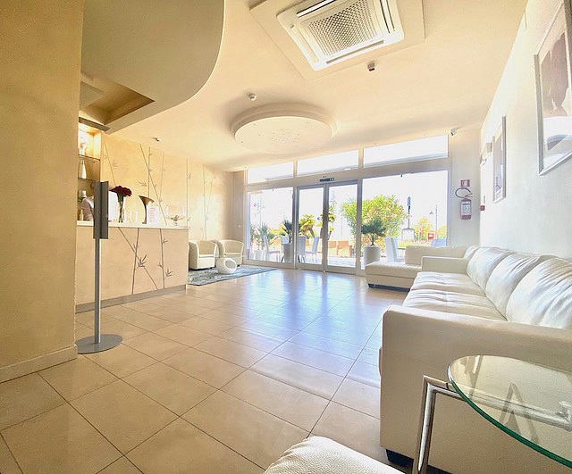recepce, bar, restaurace, společenská místnost s TV, dětský koutek, animační programy na pláži, výtah, vyhrazené parkoviště (přímo u hotelu či ve vzdálenosti přibližně 500 m, počet míst omezen), wi-fi připojení k internetu