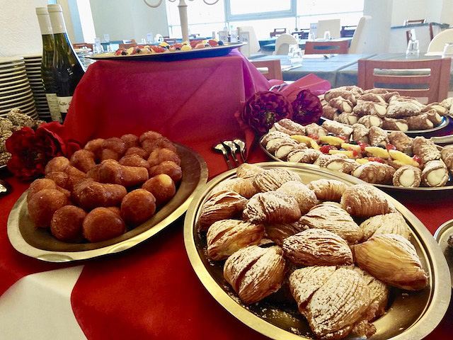 večeře - formou servírovaného bufetu, neomezené množství čepované vody a vína; ostatní nápoje za poplatek