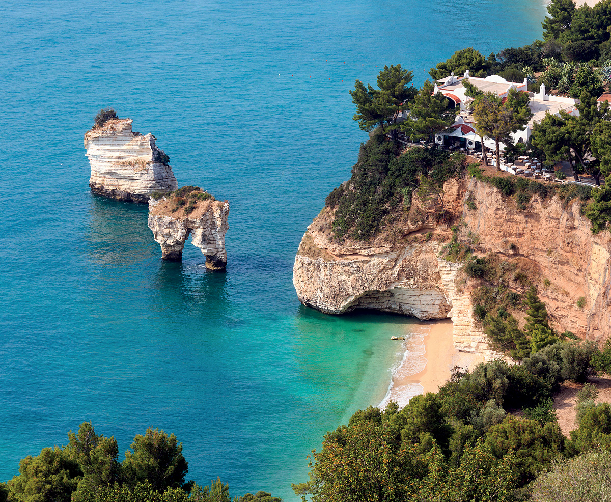 Největší atrakcí a současně i zvláštností Gargana jsou jeskyně přístupné pouze z moře, které v dómech vysokých až 50 metrů nabízejí tak nevídanou hru barev a tvarů, že by si ji neměl nechat ujít žádný z návštěvníků tohoto poloostrova. Nejvíce jeskynních systémů se nachází v pobřežním úseku o délce zhruba 30 kilometrů okolo Vieste a jejich prohlídka na člunech je tak víceméně povinností každého rekreanta. Oblíbeným zpestřením dovolené jsou zde i výlety lodí na nedaleké překrásné souostroví Tremiti či výpravy terénními vozy do Národního parku Gargano, jenž zaujímá nemalou část vnitrozemí poloostrova. Staré bukové lesy tamní známé rezervace Foresta Umbra byly v roce 2017 zapsány na prestižní seznam světového dědictví UNESCO. Působivá jsou ale i garganská městečka. Nejznámějšími z nich jsou Vieste, staré město vystavěné na skále nad mořem s mnoha schodišti a 25 metrů vysokým, z moře vyrůstajícím monolitem Pizzomunno, či úzkými klikatícími se uličkami tak pozoruhodné, až pitoreskní staré rybářské městečko Peschici, položené rovněž na vrcholcích skalních útesů. Ale i přes dynamický rozkvět cestovního ruchu je Gargano doposud klidnou oblastí s venkovským naturelem a příjemnou atmosférou, byť současně s veškerým zázemím potřebným pro dokonale naplněnou letní dovolenou.