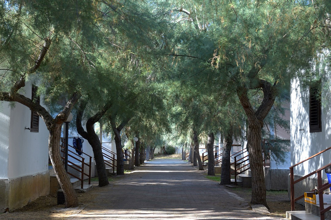 rozlehlé prázdninové středisko s jednoduchými bungalovy, mobilhomy a částí určenou pro kempink; od sezony 2024 je k dispozici taktéž možnost ubytování v bungalovech s hotelovými službami v režimu soft all inclusive