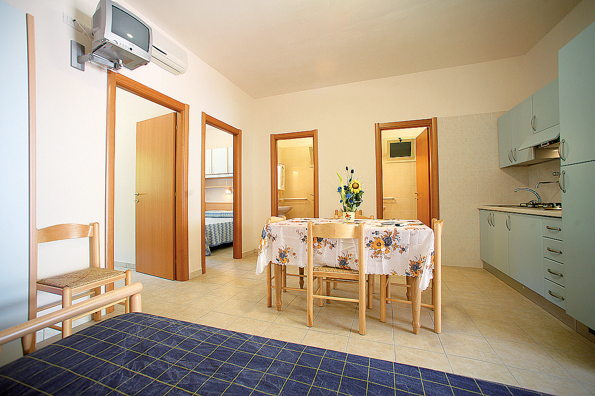rozsáhlý komplex se širokou vybaveností nabízející též několik typů apartmánů v rámci přízemních řadových vilek a jeden typ mobilhomů zasazených do piniového háje