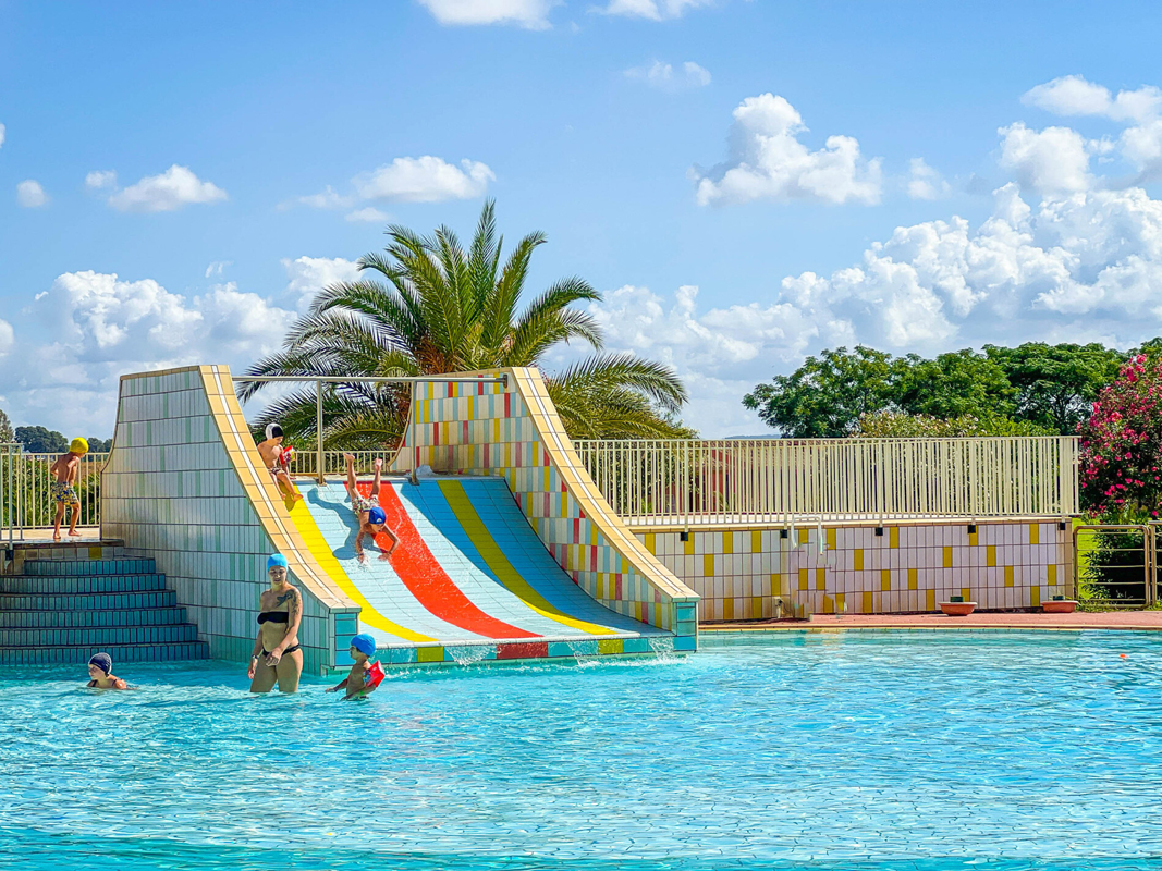velký bazén, malý bazén se skluzavkou (přibližně od konce května do poloviny září, povinná koupací čepice) se slunečníky a lehátky (dle dostupnosti), multifunkční hřiště*, tenisový kurt*, stolní tenis, plážový volejbal