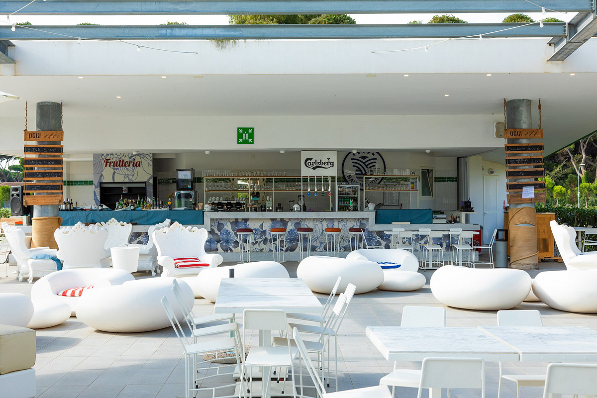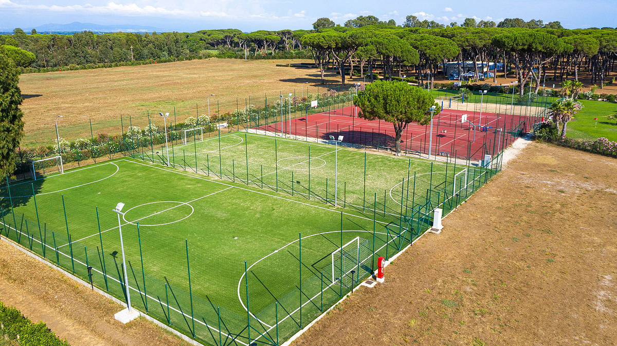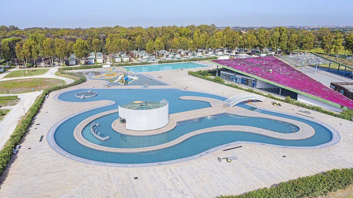 recepce / restaurace / pizzerie / bar / wi-fi připojení k internetu, dětské hřiště, herna*, animační programy (15.06. - 30.08.), vyhrazená parkovací stání, pračky a sušičky na žetony*, market, bazar, trafika, minibus na pláž*, minibus* (stanice Castel Fusano - vlak do Říma, archeologický park Ostia Antica)
