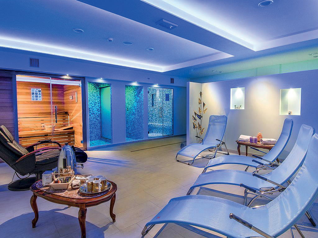 venkovní bazén (ve stanovených hodinách), plážový servis (1 slunečník + 2 lehátka / pokoj v ceně přibližně od poloviny května do poloviny září), wellness centrum* (finská sauna, turecké lázně, zážitkové sprchy, relaxační zóna), půjčovna jízdních kol (kapacita omezena)