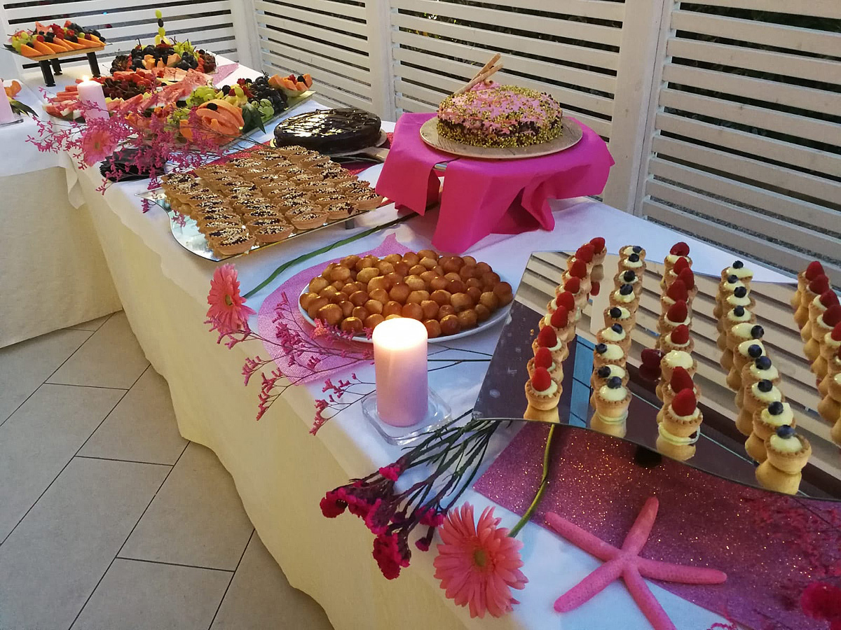 servírovaná s výběrem z menu, předkrmy, saláty a dezerty formou bufetu, čepované nápoje (voda, víno a nealko); ostatní nápoje za poplatek
