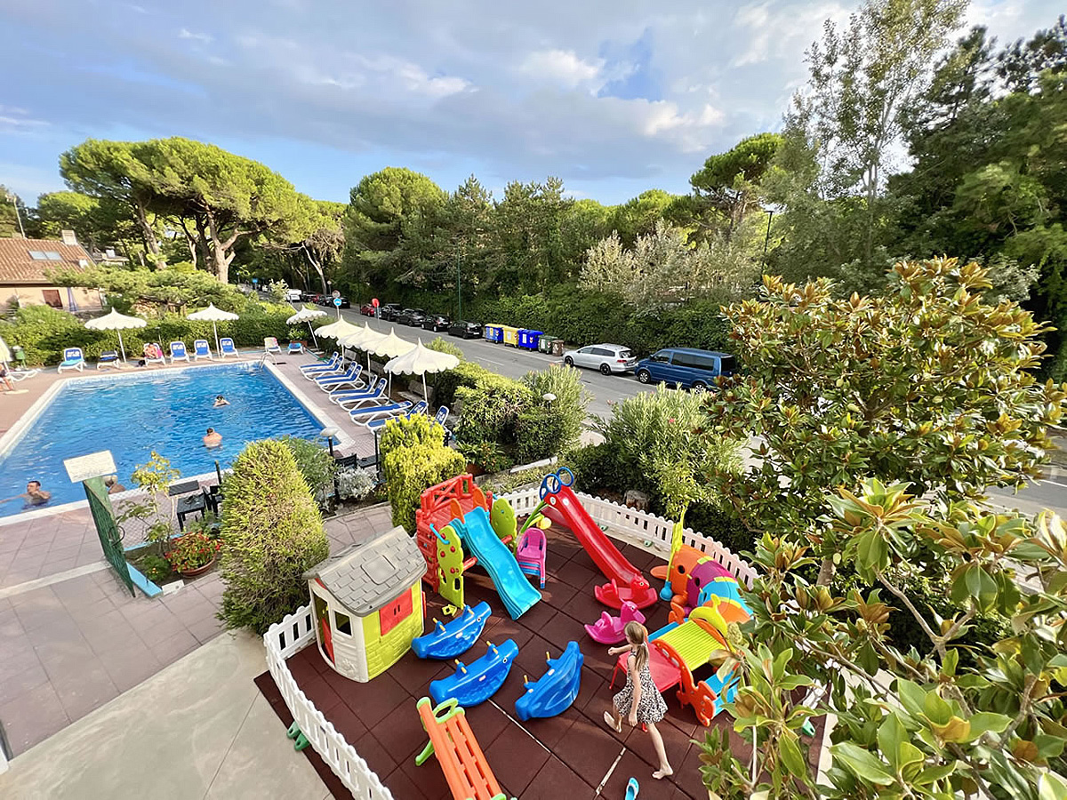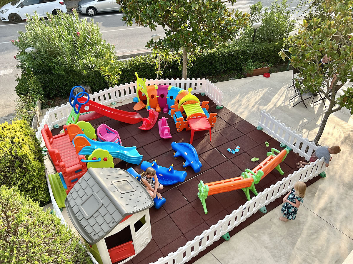 recepce / lobby, restaurace, bar, televizní místnost, výtah, dětské hřiště, střešní terasa s lehátky, slunečníky, sprcha, venkovní terasa s posezením, vyhrazené parkoviště (počet míst omezen), wi-fi připojení k internetu, většina společných prostor hotelu je klimatizovaná