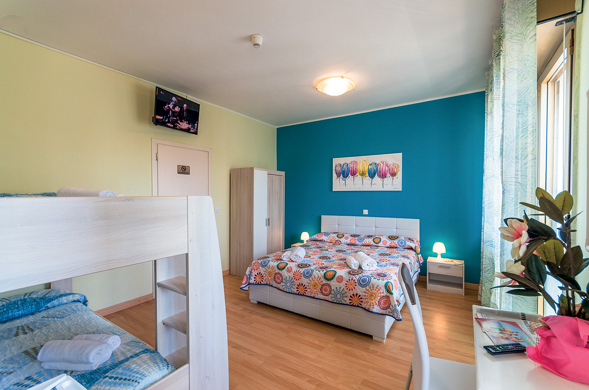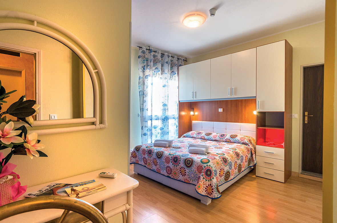 14 m² - pokoj s manželskou postelí či 2 samostatnými lůžky, sociální zařízení se sprchou, zpravidla balkon; možnost 3. a 4. lůžka (možnost palandy)