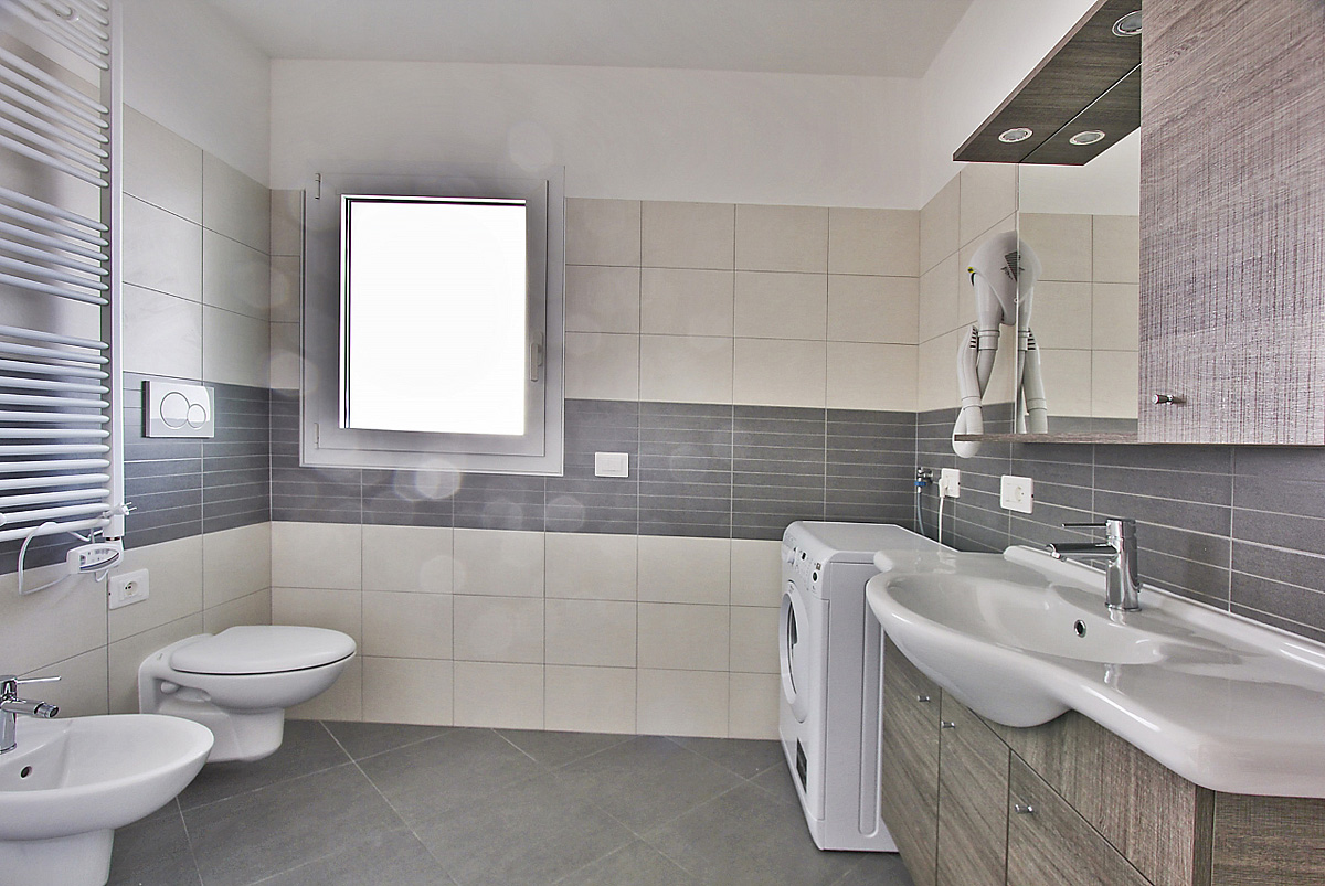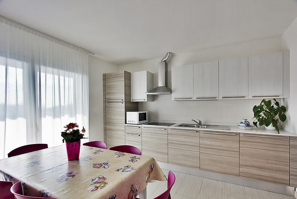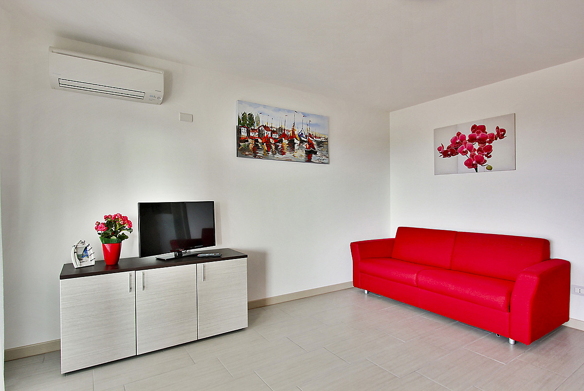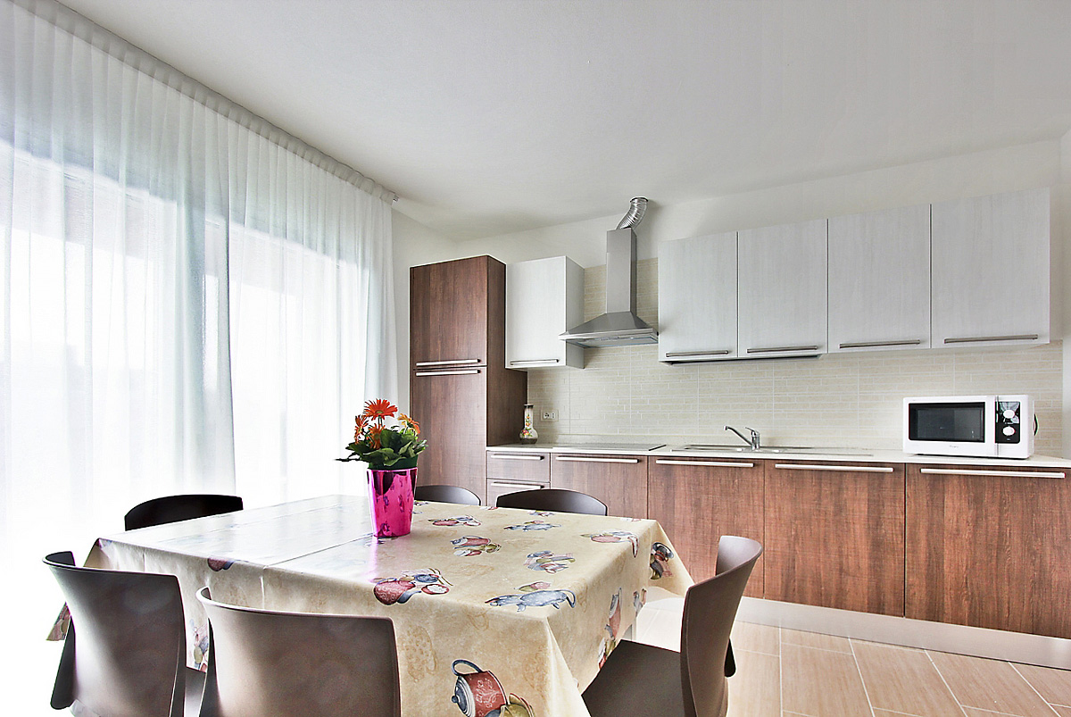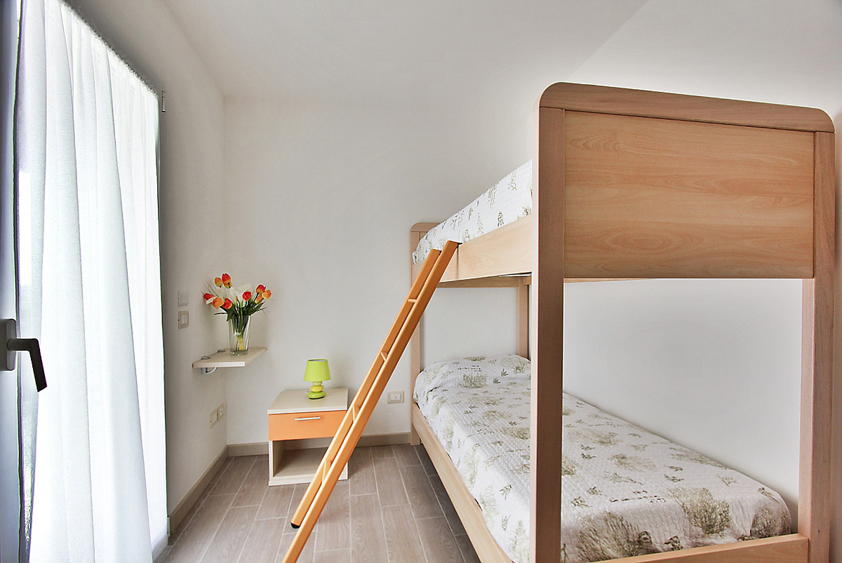 1 ložnice s manželskou postelí, 1 ložnice se 2 samostatnými lůžky či palandou, obývací pokoj s kuchyňským koutem a rozkládacím gaučem (možno i typ "šuplík") pro 2 osoby, sociální zařízení se sprchovým boxem, balkon; typ trilo 6++ se 2 sociálními zařízeními a velkým balkonem s výhledem na lagunu