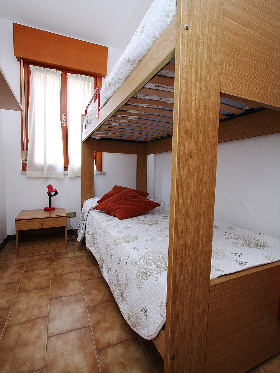 přízemí: obývací pokoj s kuchyňským koutem a rozkládacím gaučem (možno i typ "šuplík") pro 2 osoby, terasa; 1. patro:1 ložnice s manželskou postelí a 1 samostatným lůžkem, sociální zařízení se sprchou, balkon
