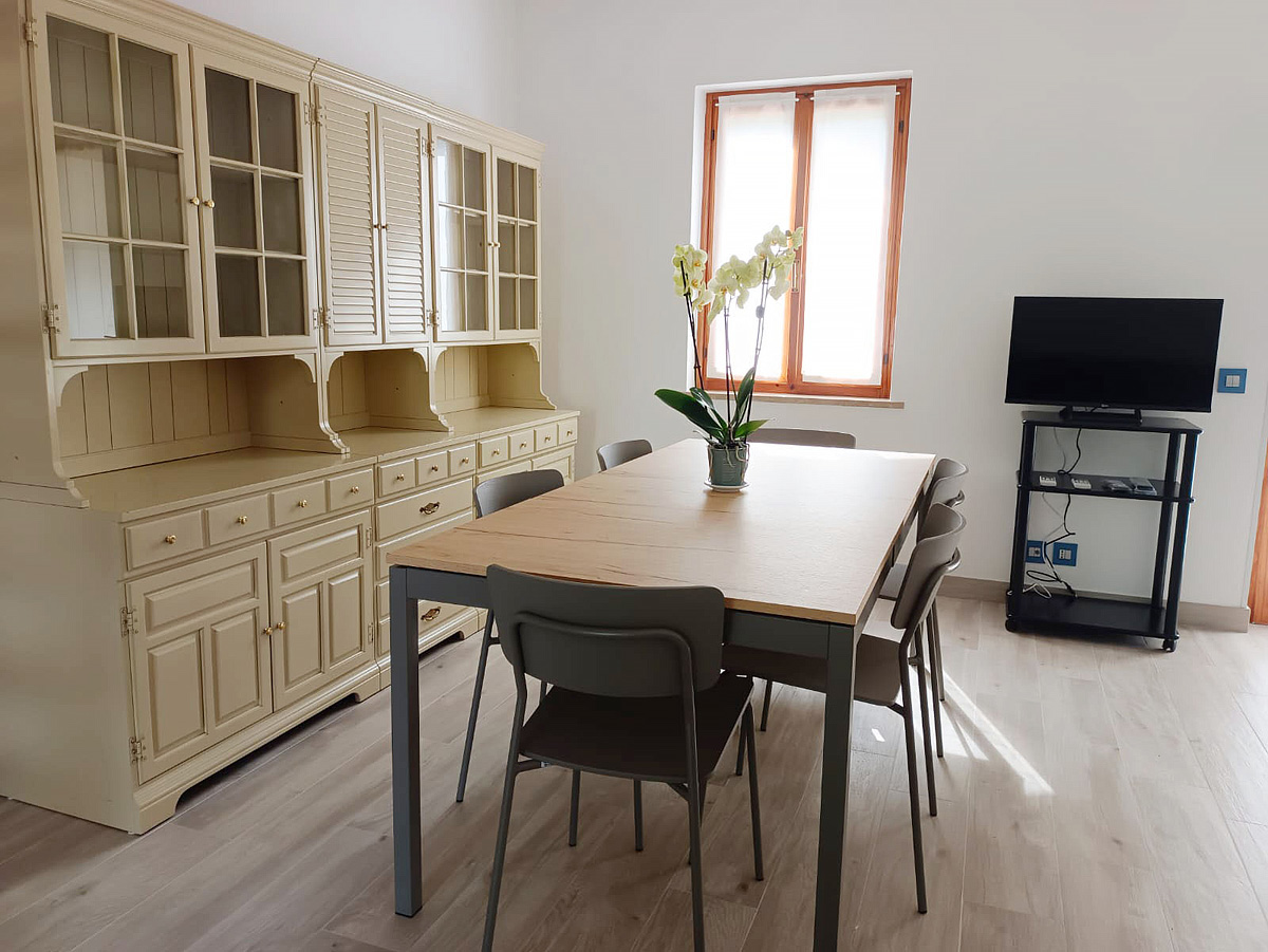 přízemí: obývací pokoj s jídelním koutem a rozkládacím gaučem pro 2 osoby, samostatná kuchyň, zařízená terasa. 1.patro: 1 ložnice s manželskou postelí, 1 ložnice se 2 samostatnými lůžky, sociální zařízení se sprchou, balkon