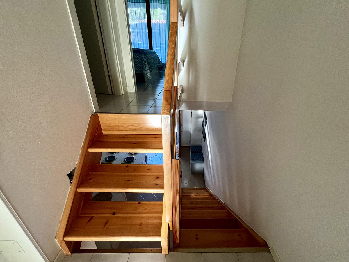 suterén: sociální zařízení se sprchou a pračkou, přízemí: obývací pokoj s rozkládacím gaučem pro 1 osobu, kuchyňka s jídelním koutem; 1.patro: 1 ložnice se 3 samostatnými lůžky, balkon, 2.patro: 1 ložnice s manželskou postelí, sociální zařízení se sprchou, balkon