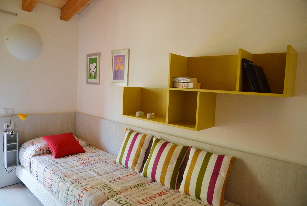 50 m² - přízemí: obývací pokoj s kuchyňským koutem a rozkládacím gaučem pro 2 osoby (možnost typ "šuplík"), sociální zařízení se sprchovým boxem, terasa s předzahrádkou; 1.patro: 1 ložnice s manželskou postelí, 1 ložnice se 2 samostatnými lůžky sociální zařízení se sprchovým boxem, balkon