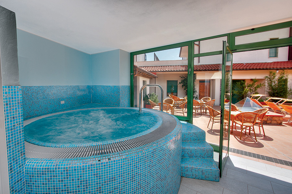 bazén 15 x 7 m s dětskou částí, lehátky a slunečníky (omezený počet), hydromasážní vana, posilovna, biliard, stolní tenis, úschovna jízdních kol, půjčovna jízdních kol*, zvýhodněný plážový servis*