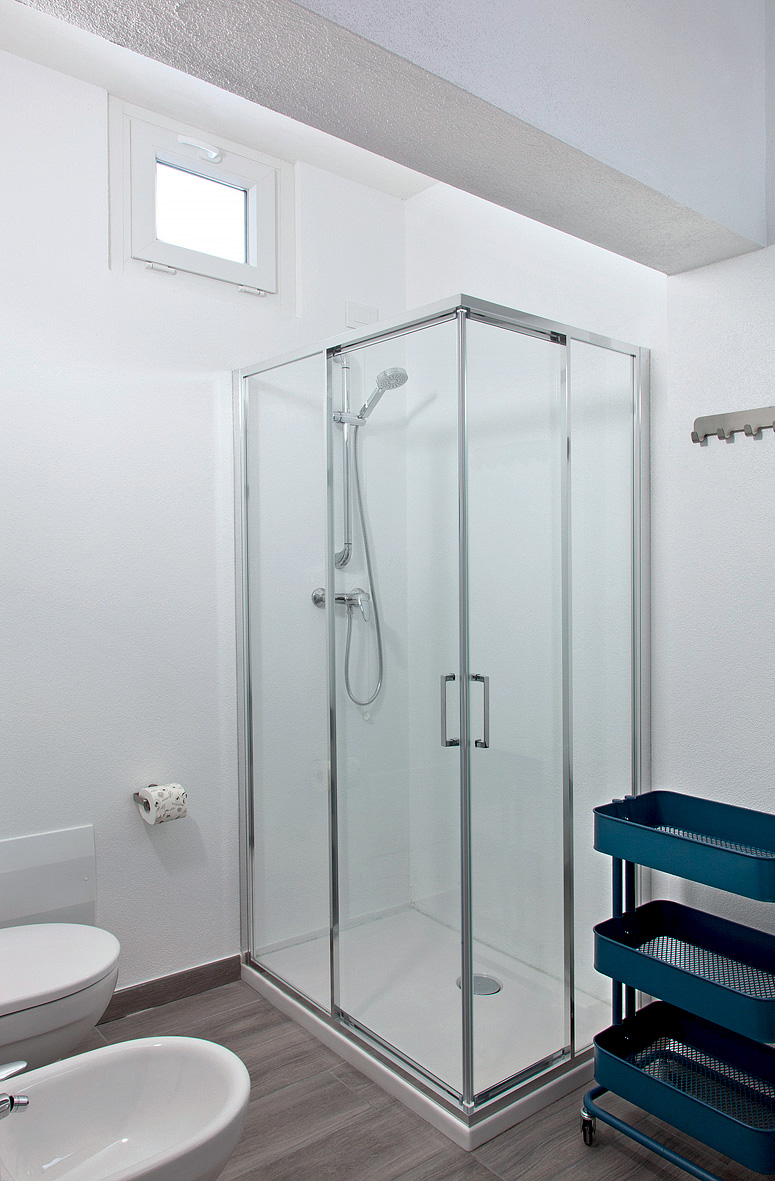 50 až 60 m² - 1 ložnice s manželskou postelí, 1 ložnice s manželskou postelí a palandou, obývací pokoj s kuchyňským koutem a rozkládacím gaučem pro 2 osoby, 2x sociální zařízení se sprchou, balkon či malé francouzské okno