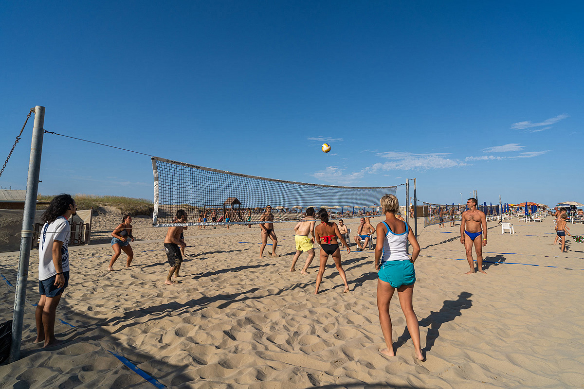 bazén pro dospělé a bazén pro děti se slunečníky a lehátky* (přibližně od poloviny května do začátku září, povinná koupací čepice), plážový servis*, stolní tenis, půjčovna kol*, plážový volejbal, plážový tenis