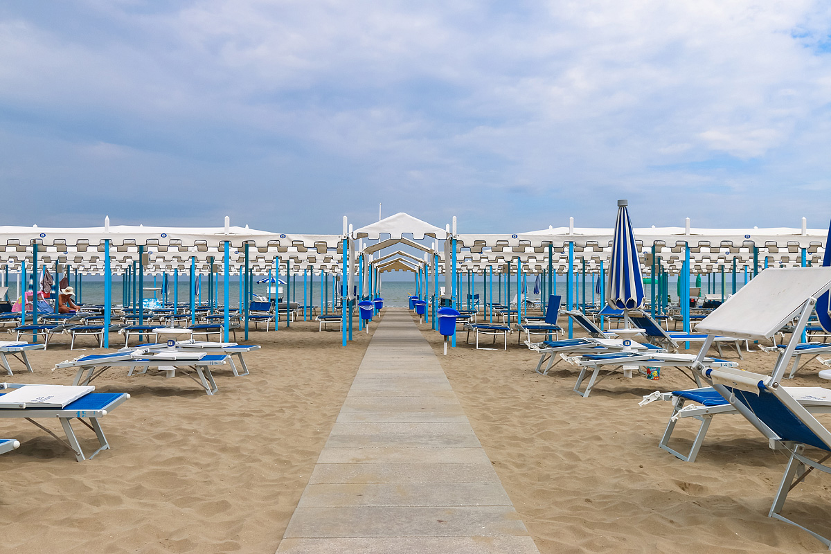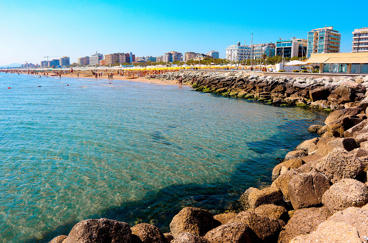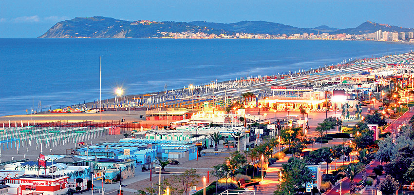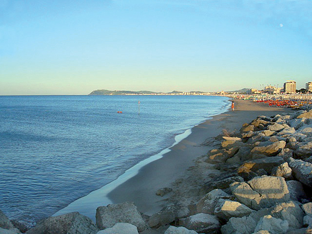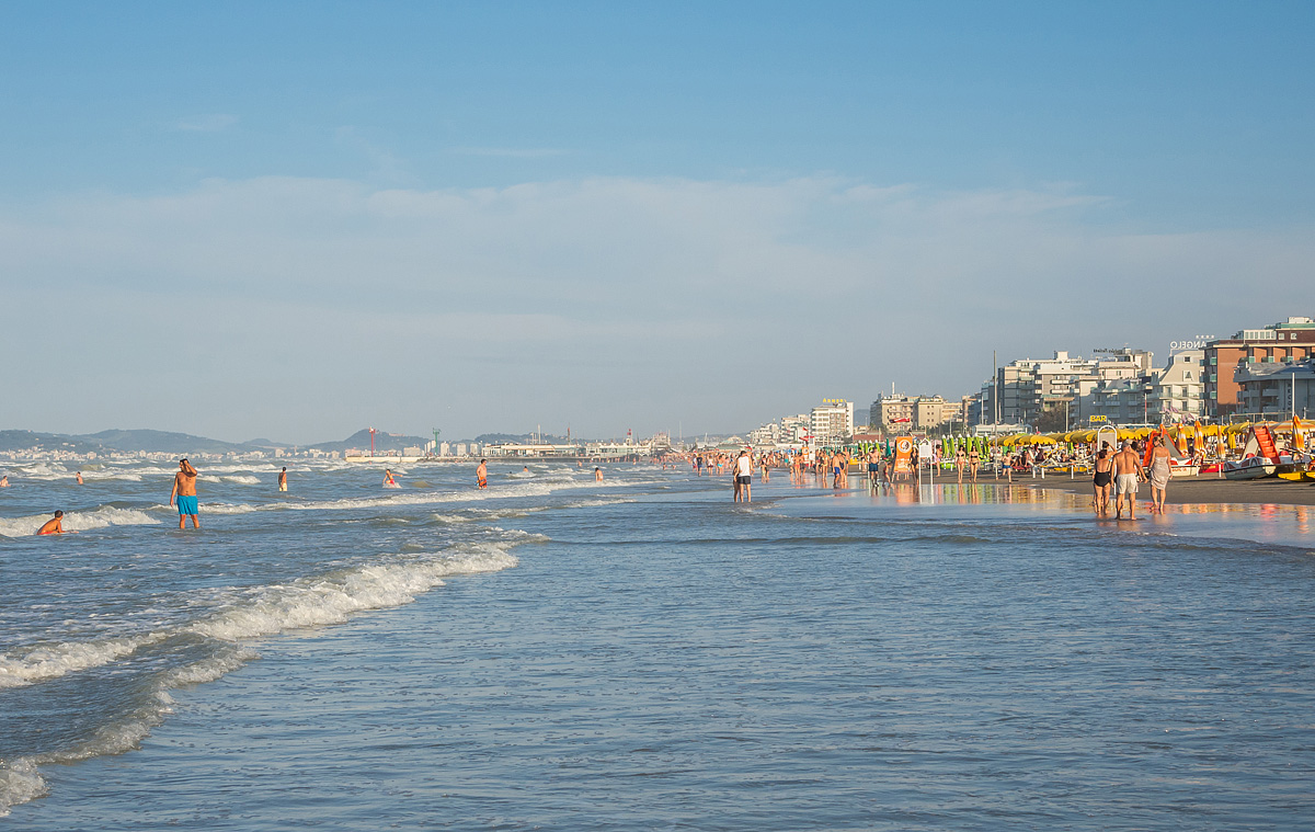 40 km dlouhá pláž sahající od Gabicce na jihu po Cesenatico na severu je tvořena převážně velmi jemným pískem, v průměru dosahuje šířky kolem 50 m a je typická pozvolným a bezpečným vstupem do moře, absolutně ideálním pro malé děti a neplavce. Voda zde bývá kvůli jemnému písku u břehu často lehce zakalená, není však znečištěná. Zdejší moře není vhodné pro potápění a nežijí v něm nebezpeční živočichové. K dispozici jsou zde jak pláže veřejné (mezi plážemi č. 5 a 11, 16 a 17, 39 a 40, 48 a 50, 51 a 52, 77 a 78, 110 a 111, 137 a 138, 146 a 148), tak i převažující pláže soukromé. Na každodenně udržovaných soukromých plážích si lze pronajmout plážový servis, k dispozici jsou zde bary, sociální zařízení, sprchy a u některých i restaurace, sportovní zázemí (hřiště na míčové sporty, lodičky, šlapadla atd.), dětská hřiště, animační programy, plavčíci apod. Na volné pláže si lze přinést cokoli včetně vlastních slunečníků, ale nejsou pravidelně upravovány a nemají sociální zařízení. Na plážích soukromých je použití vlastních slunečníků zakázáno.