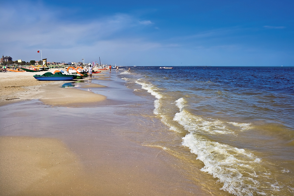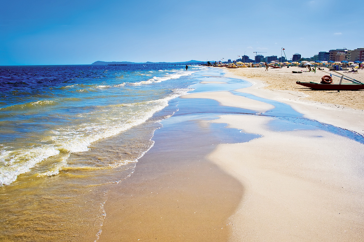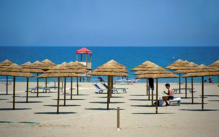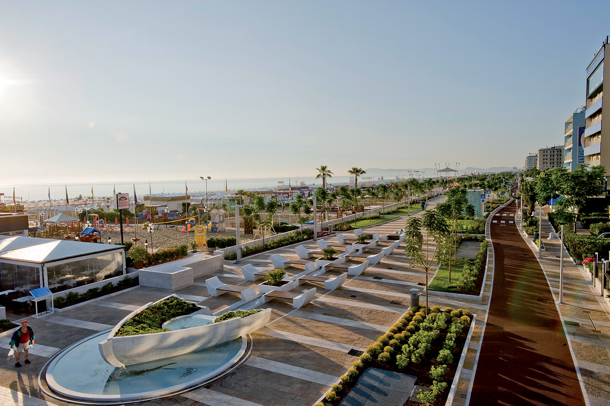 40 km dlouhá pláž sahající od Gabicce na jihu po Cesenatico na severu je tvořena převážně velmi jemným pískem, v průměru dosahuje šířky kolem 50 m a je typická pozvolným a bezpečným vstupem do moře, absolutně ideálním pro malé děti a neplavce. Voda zde bývá kvůli jemnému písku u břehu často lehce zakalená, není však znečištěná. Zdejší moře není vhodné pro potápění a nežijí v něm nebezpeční živočichové. K dispozici jsou zde jak pláže veřejné (mezi plážemi č. 5 a 11, 16 a 17, 39 a 40, 48 a 50, 51 a 52, 77 a 78, 110 a 111, 137 a 138, 146 a 148), tak i převažující pláže soukromé. Na každodenně udržovaných soukromých plážích si lze pronajmout plážový servis, k dispozici jsou zde bary, sociální zařízení, sprchy a u některých i restaurace, sportovní zázemí (hřiště na míčové sporty, lodičky, šlapadla atd.), dětská hřiště, animační programy, plavčíci apod. Na volné pláže si lze přinést cokoli včetně vlastních slunečníků, ale nejsou pravidelně upravovány a nemají sociální zařízení. Na plážích soukromých je použití vlastních slunečníků zakázáno.