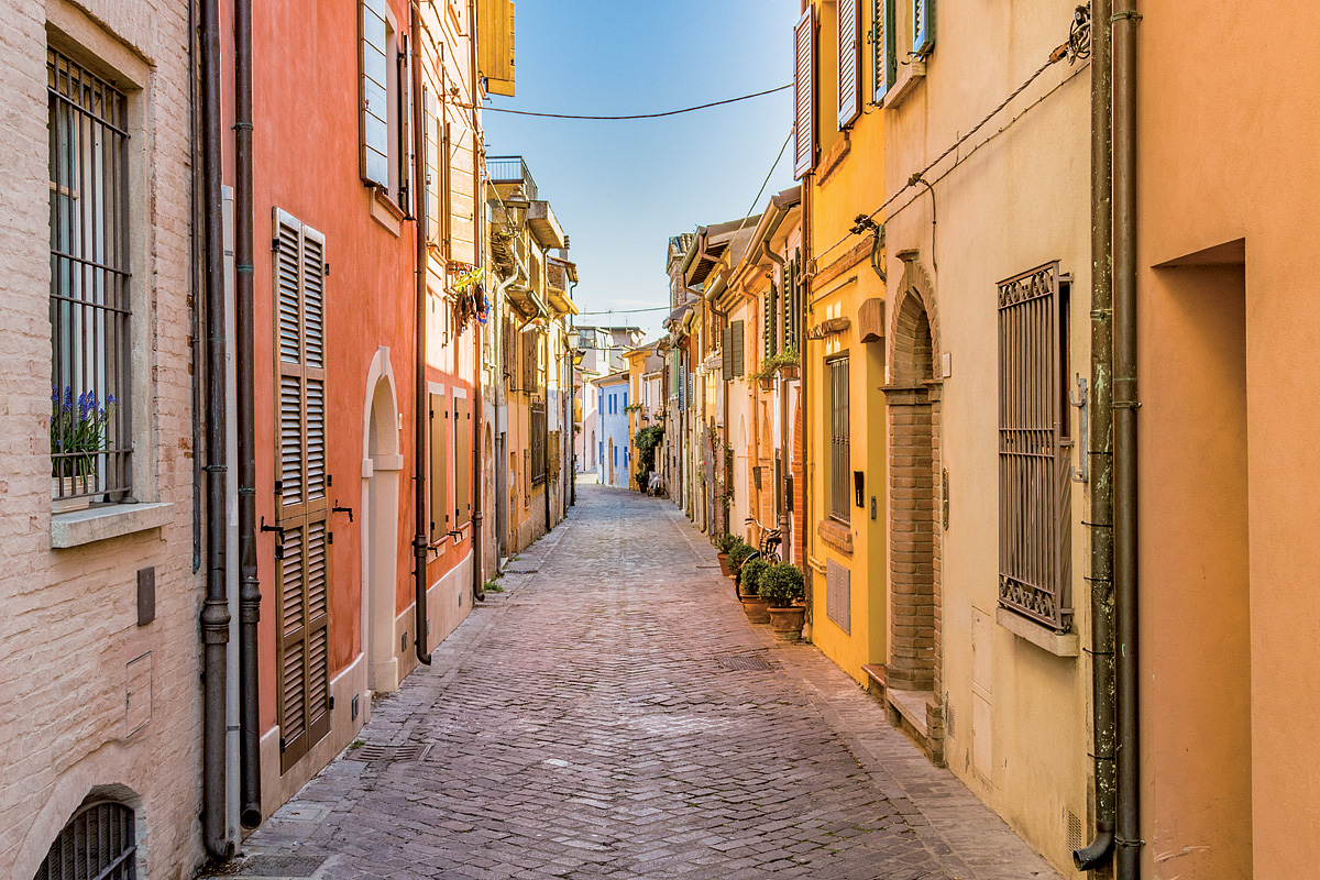 Za zmínku však dozajista stojí i bohatá historie Rimini. Staré město, které bylo písečnými naplaveninami během posledních více než 2000 let posunuto ze samého pobřeží asi 1 kilometr do vnitrozemí, totiž bylo pod názvem Ariminium založeno již ve 3. století před naším letopočtem na křižovatce antických silnic Via Emilia a Via Flaminia. Z antických dob se zde dodnes dochoval Augustův oblouk z roku 26 před Kristem, Tiberiův most z roku 20 n. l. a zbytky amfiteátru. Ve středověku patřilo město rodu Malatesta. Mezi nejvýznamnější dědictví této epochy se řadí hrad Rocca Malatestiana a chrám Tempio Malatestiano postavený v 15. století Leonem Battistou Albertim v renesančním stylu pro Sigismonda Malatestu. Jedná se o vůbec jedny z prvních renesančních staveb mimo Toskánsko ležící za Apeninami. V chrámu nalezneme vzácný malovaný kříž od Giotta a cennou fresku znázorňující Sigismonda Malatestu klečícího před svatým Sigismondem od Piera dalla Francesca. Srdcem starého města je náměstí Piazza Cavour s radnicí, kašnou Fontana della Pigna, sochou papeže Pavla V. a románským Palazzem d‘Arengo. Opomenout ale nesmíme ani Rimini jako rodiště Federica Felliniho, největšího italského filmového režiséra 20. století, který „svému“ městu věnoval nezapomenutelný film Amarcord.