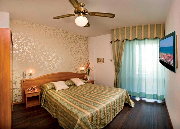 pokoj s manželskou postelí či 2 samostatnými lůžky, sociální zařízení se sprchou, balkon s bočním výhled na moře; možnost 3. a 4. lůžko formou pevného lůžka, přistýlky či palandy