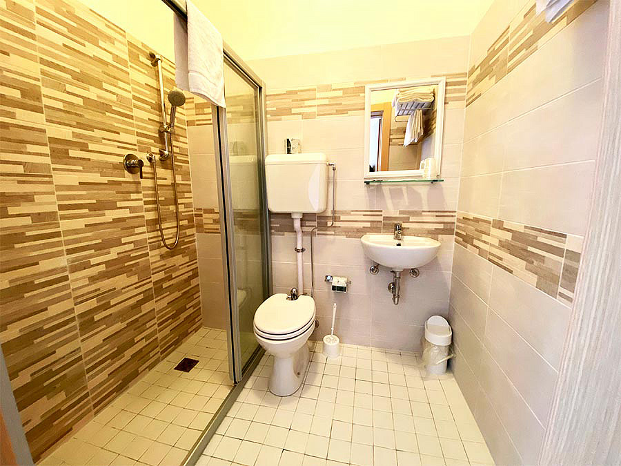 pokoj s manželskou postelí či 2 samostatnými lůžky, sociální zařízení se sprchou, balkon; možnost 3. a 4. lůžka formou přistýlky či palandy