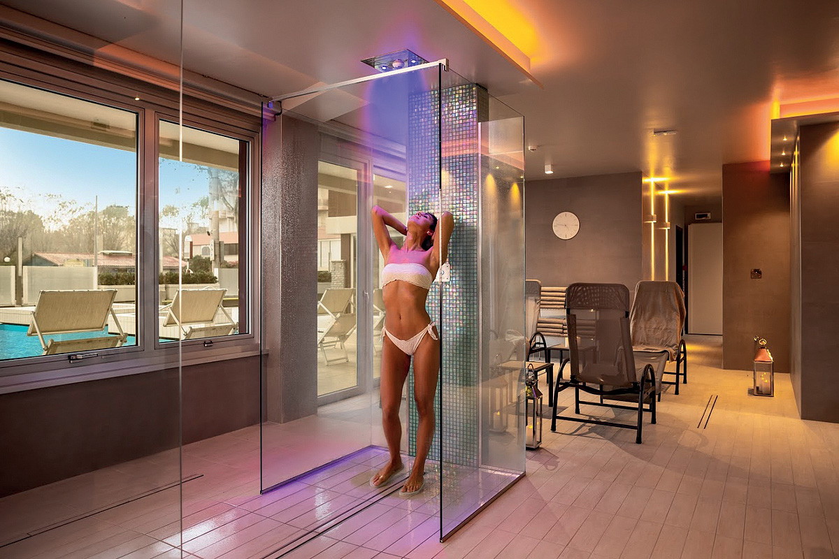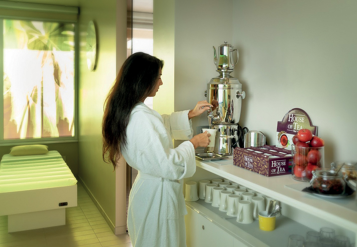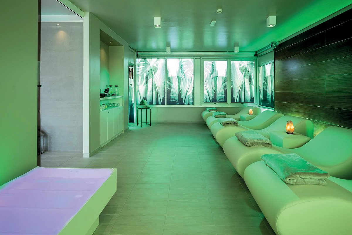 venkovní bazén s mořskou vodou, dětský bazén, vířivka, wellness centrum* (od 16 let; finská sauna, turecká lázeň, vířivka, zážitkové sprchy, masážní lehátka, relax zóna, k dispozici bylinkové čaje, ovoce a snack); masáže* a další terapie* na vyžádání