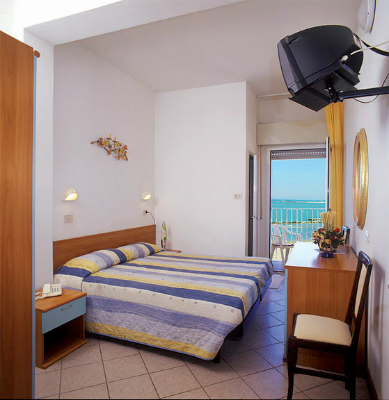 pokoj s manželskou postelí či 2 samostatnými lůžky, sociální zařízení se sprchou, balkon; možnost 3. pevného lůžka, čtyřlůžkové pokoje vždy s palandou