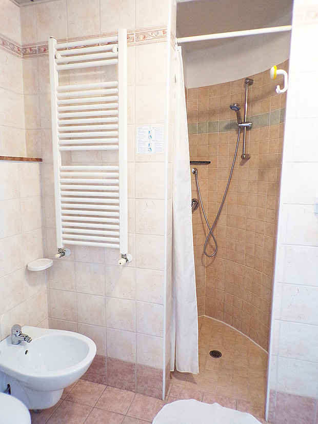 pokoj s manželskou postelí či 2 samostatnými lůžky, sociální zařízení se sprchou, balkon; 3. a 4. lůžko formou přistýlky či palandy