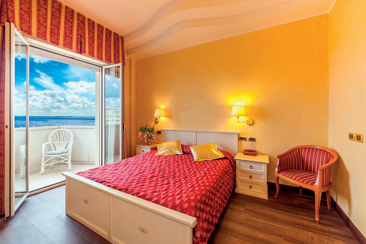 pokoj s manželskou postelí či 2 samostatnými lůžky, sociální zařízení se sprchou, zpravidla balkon s bočním výhledem na moře; 3. lůžko formou přistýlky, 4. lůžko vždy palanda