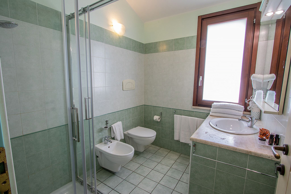 pokoj s manželskou postelí nebo 2 samostatnými lůžky a 1 samostatným lůžkem či rozkládacím lůžkem, sociální zařízení zpravidla se sprchou, malá terasa či balkon; pokoje mohou být dvoupodlažní, kdy pokoj s lůžky je v 1. patře a sociální zařízení v přízemí