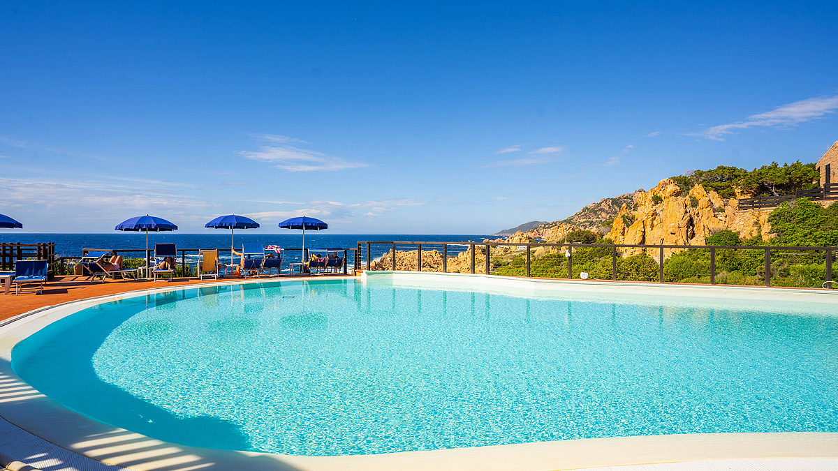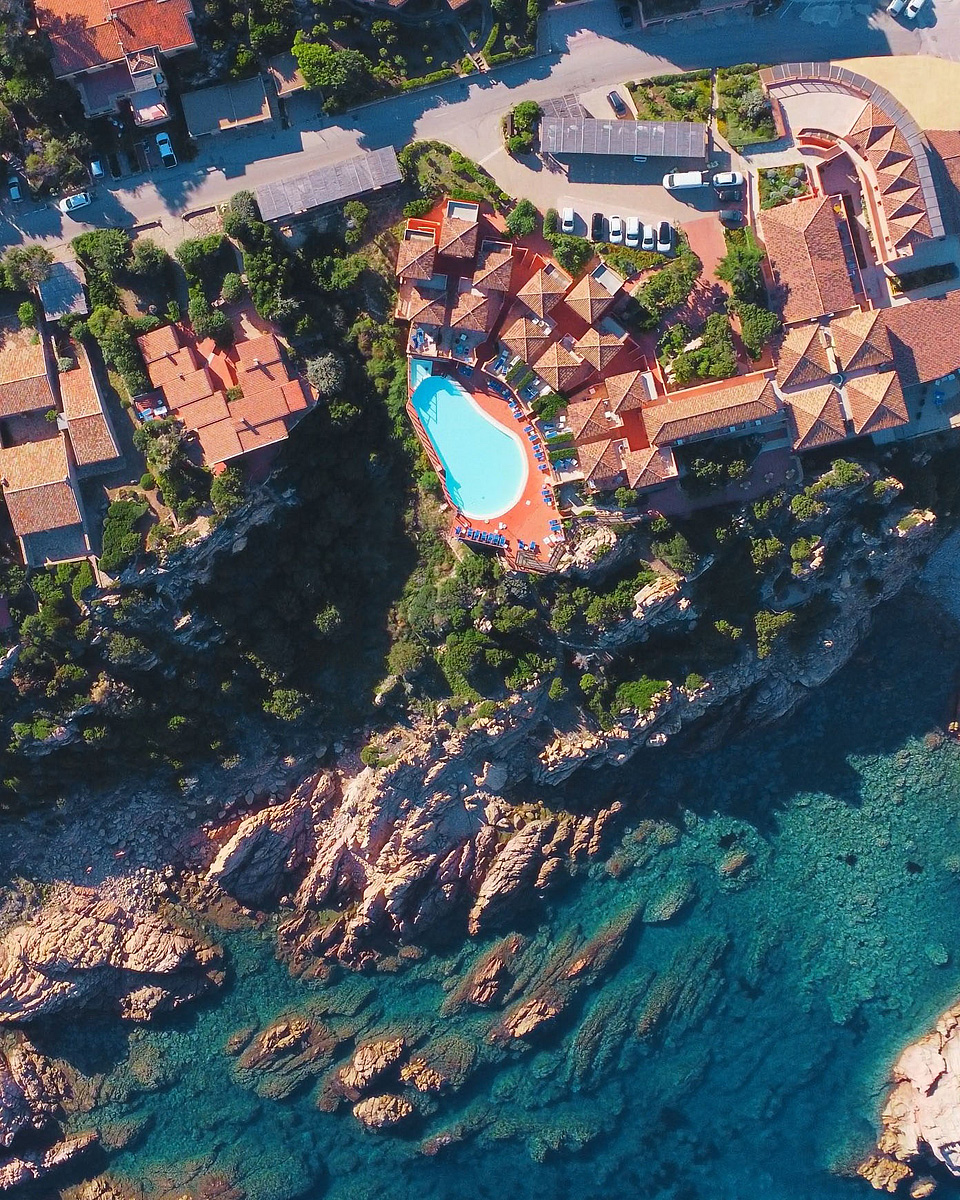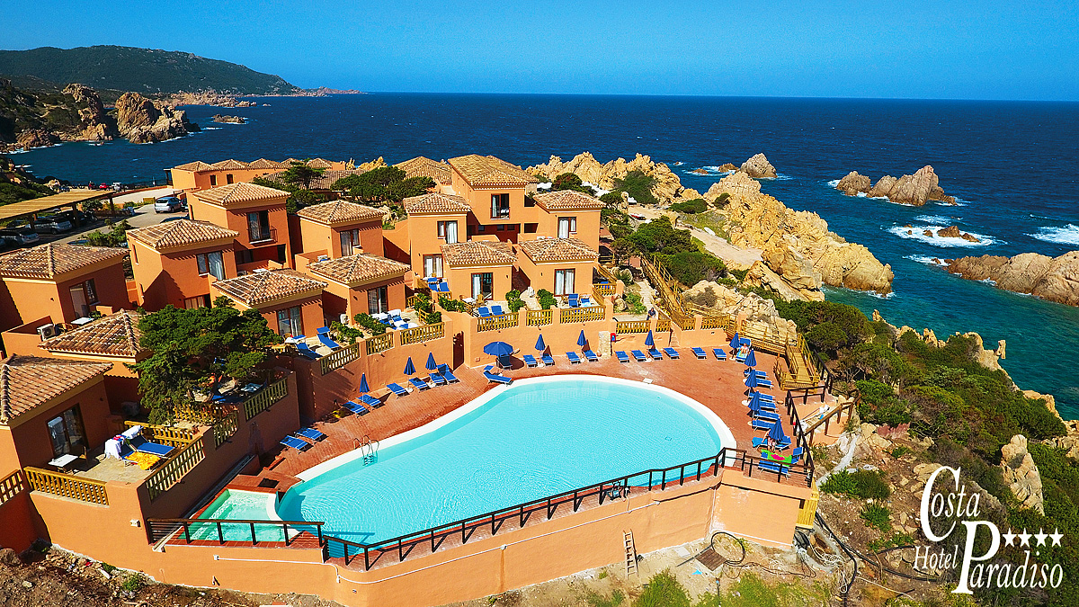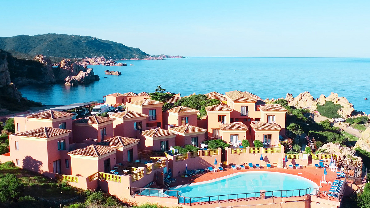 hotelový komplex v typickém sardském stylu, kde jsou umístěny v hlavní budově a řadových dvoupodlažních vilkách