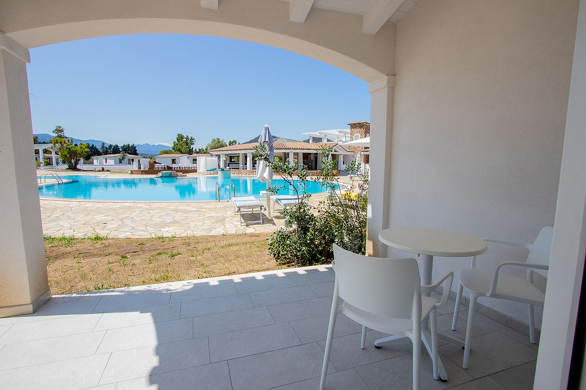 pokoj s manželskou postelí či 2 samostatnými lůžky, 3. a 4. lůžko formou pevného lůžka částečně oddělené od hlavního pokoje, sociální zařízení zpravidla se sprchou, terasa; pokoje byly nedávno zrekonstruovány a nachází se v samostatných vilkách, maximální obsazenost: 4 dospělí + infant do 2,99 let