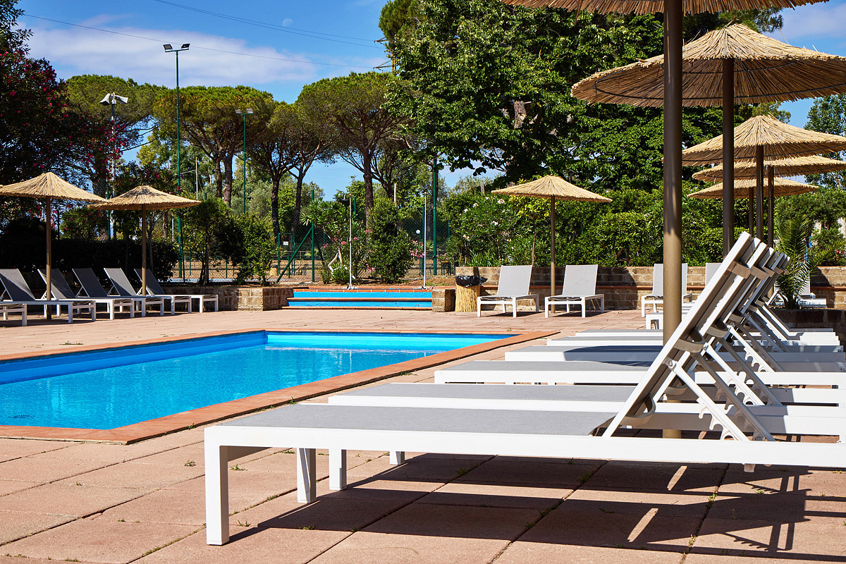 2 bazény (v provozu červenec – srpen) se slunečníky a lehátky (dle dostupnosti), multifunkční hřiště, tenisový kurt