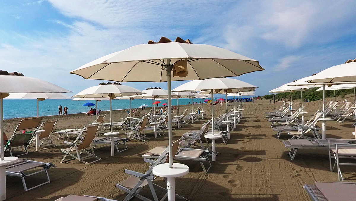 plážový servis (1 slunečník, 1 lehátko a 1 křesílko / pokoj v ceně, od 25.05. do 28.09., od 3. řady), venkovní posilovna, úschovna kol