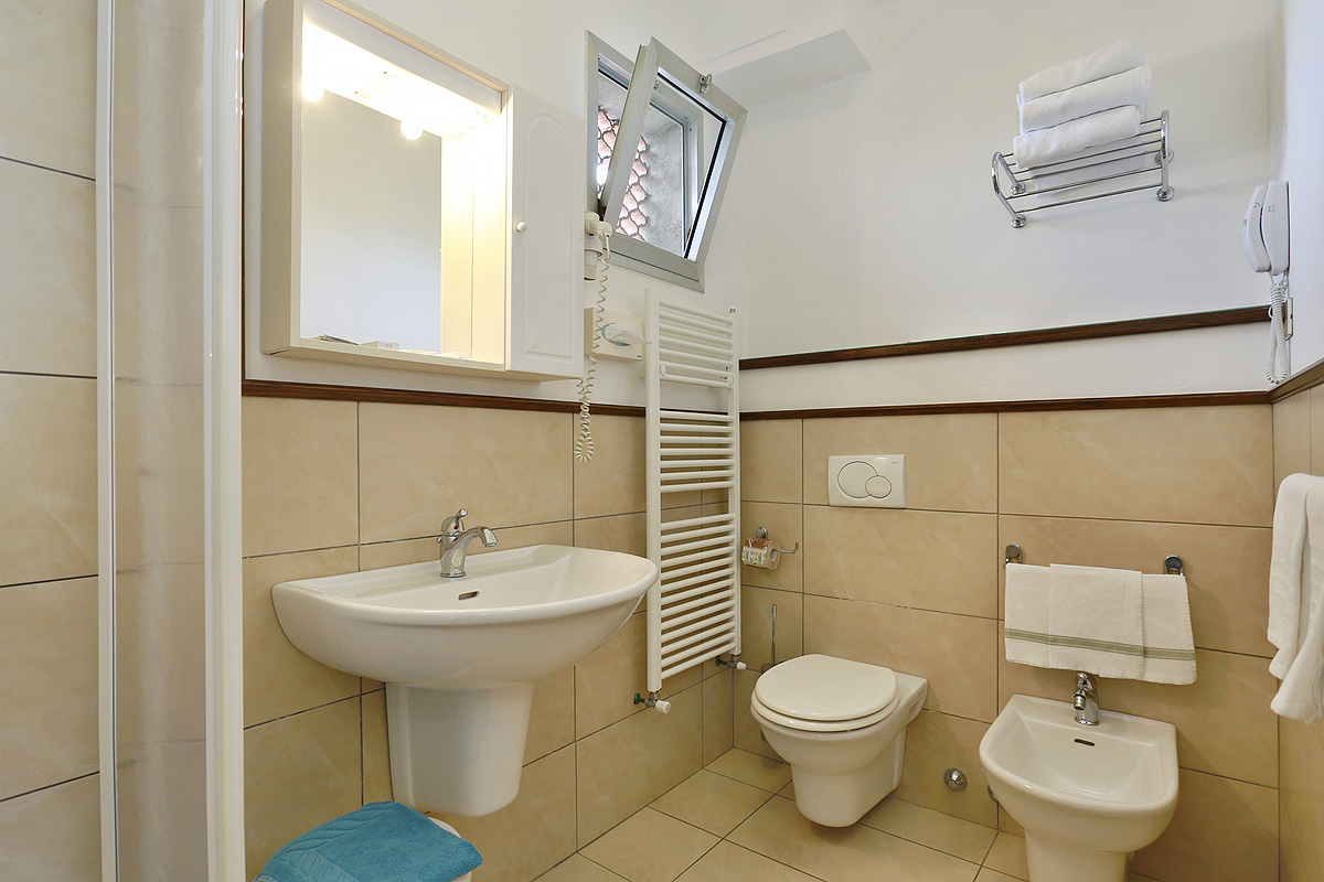 pokoj s manželskou postelí či 2 samostatnými lůžky, sociální zařízení se sprchou; 3. lůžko pevné nebo formou přistýlky