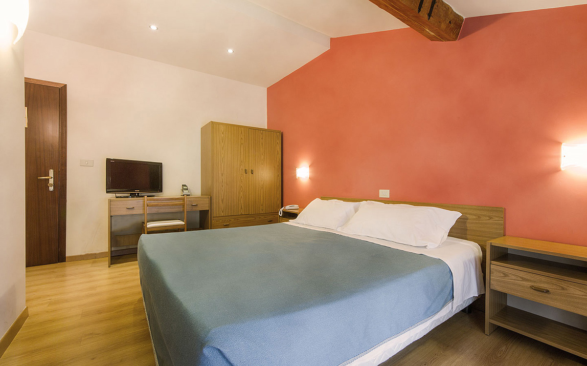 pokoj s manželskou postelí či 2 samostatnými lůžky, sociální zařízení se sprchou či vanou; 3. lůžko formou přistýlky; balkon* (na vyžádání)
