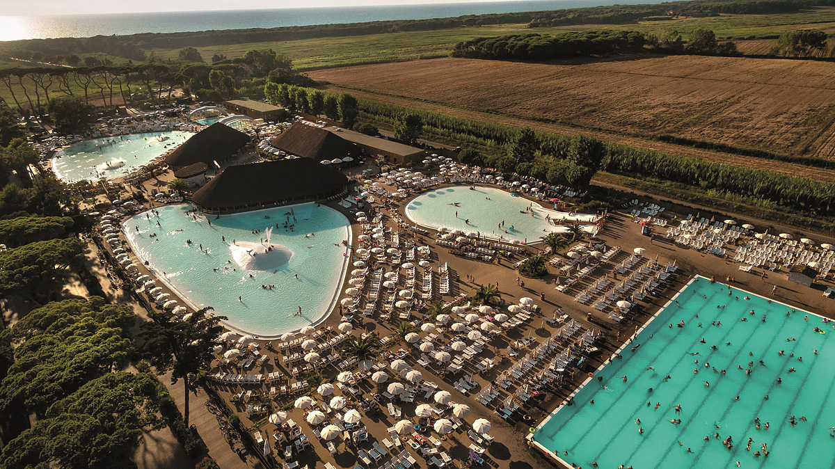 rozlehlý prázdninový resort s pěkným aquaparkem