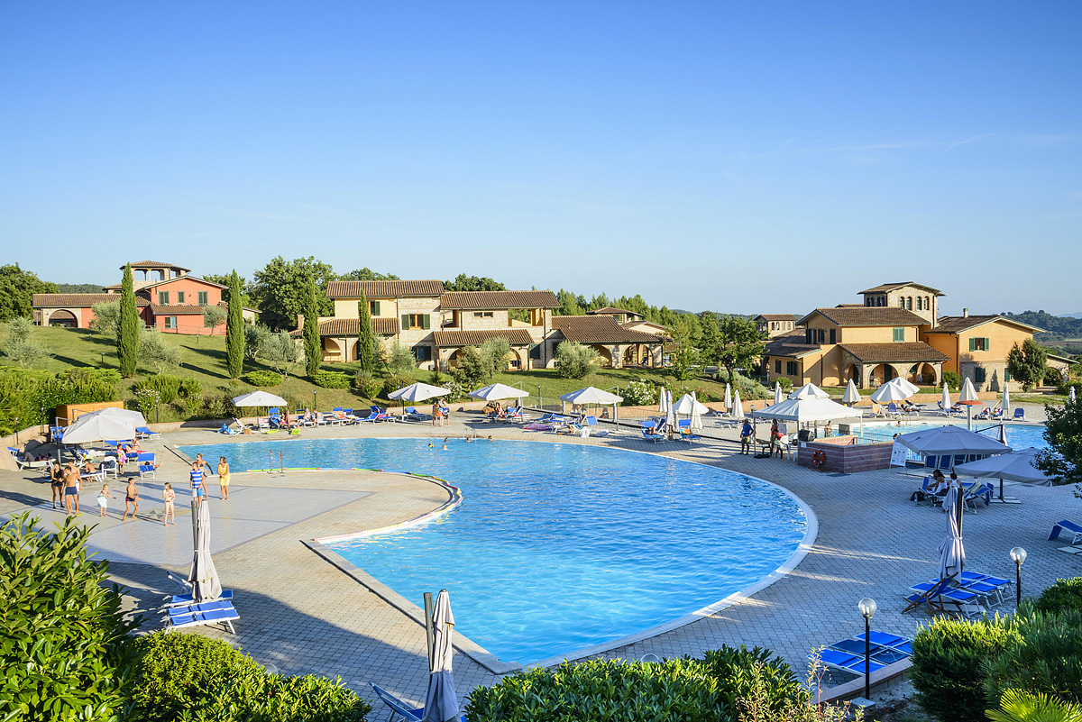 prázdninový komplex zasazený do nádherné toskánské krajiny s panoramatickým výhledem do okolí