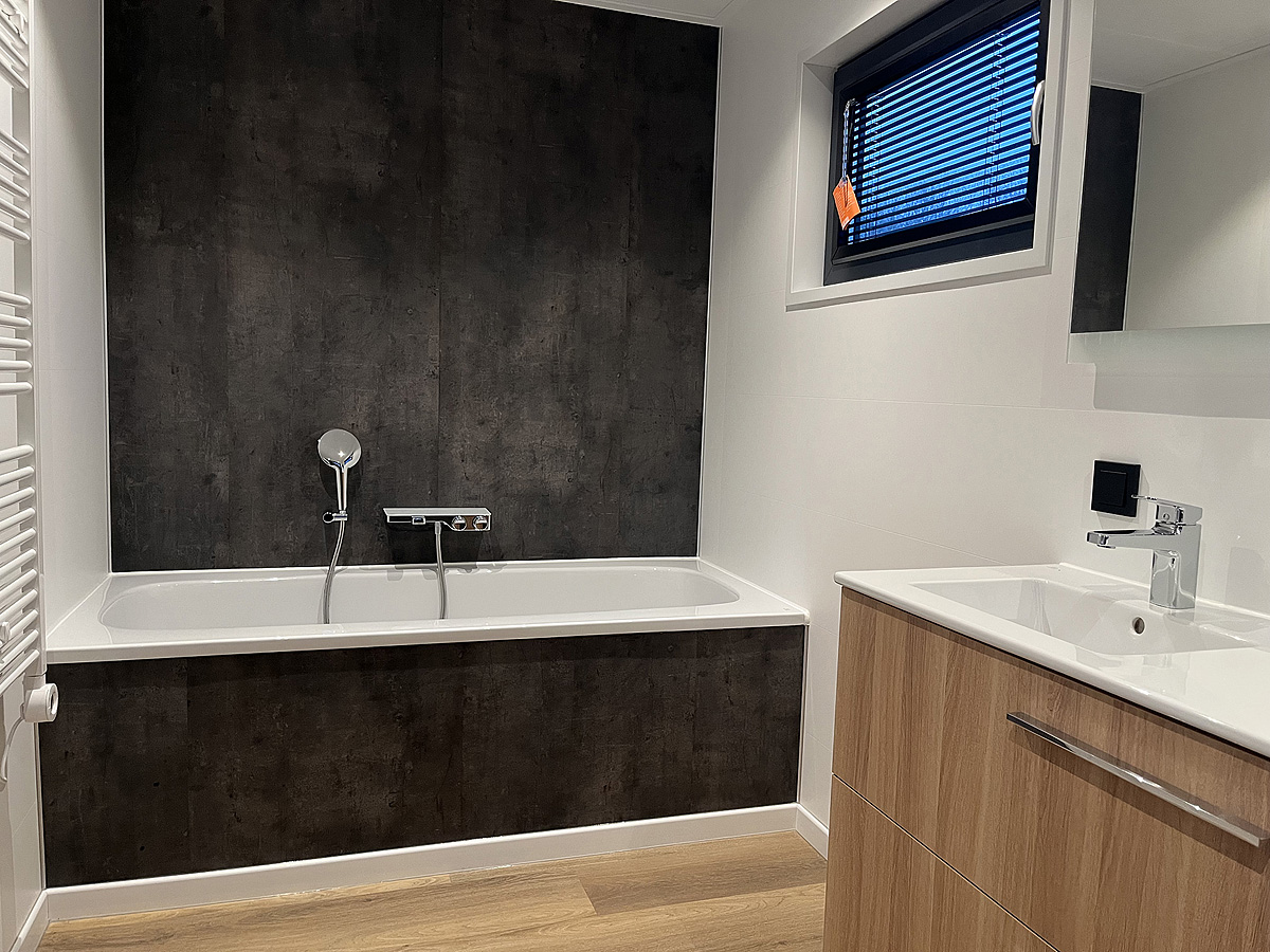 dvoupatrový chalet, přízemí: 1 ložnice se 2 samostatnými lůžky, obývací pokoj s kuchyňským koutem, sociální zařízení, toaleta samostatně, 1. patro: 1 ložnice se 2 samostatnými lůžky, 2 ložnice s palandou pro až 4 děti do 15 let, sociální zařízení, venkovní terasa se zahradním nábytkem, další venkovní terasa v patře, max. obsazenost pro 4 dospělé osoby a 4 děti do 15 let