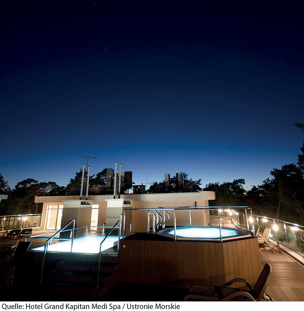 malý bazén, sauna, finská sauna, masáže*, kosmetické služby*, posilovna, na střeše hotelu též vířivka a dětský bazének, půjčovna* jízdních kol