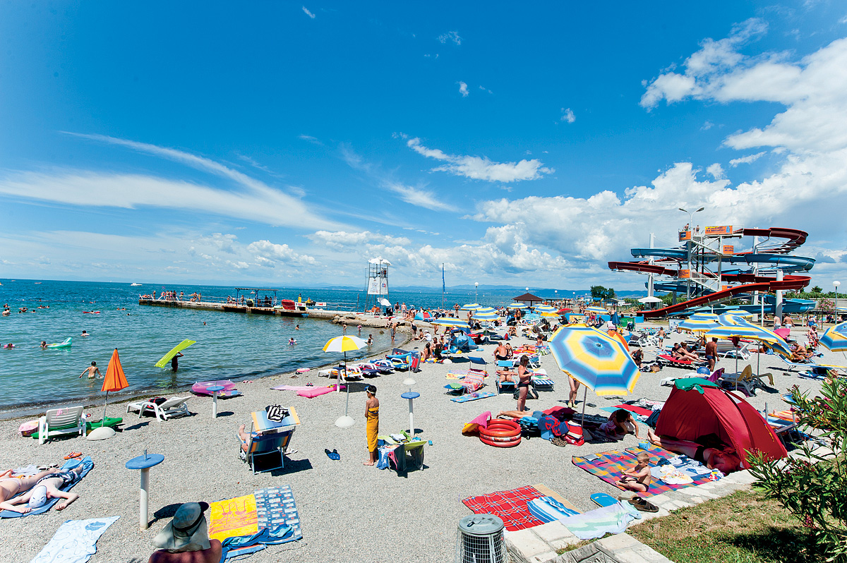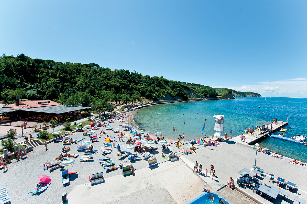 Izola, centrum - 1 km, pláž / oblázková, travnatá a skalnatá, z většiny s betonovými platy - do 200 m, Koper - 8 km, Portorož - 6,5 km