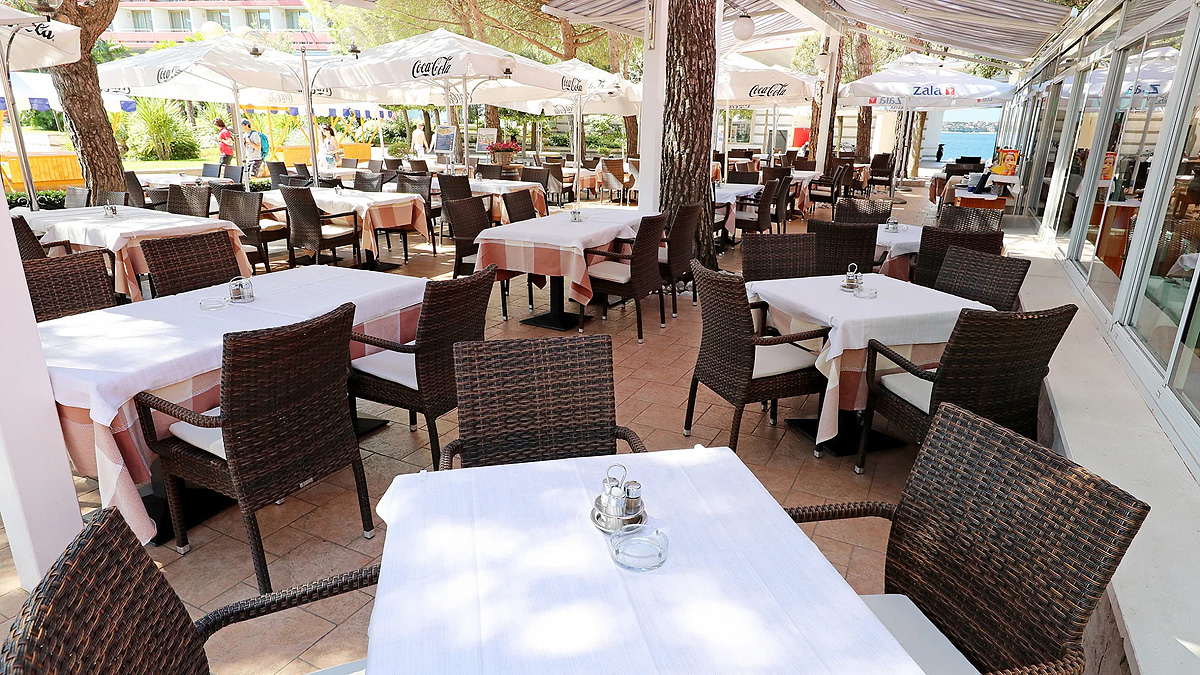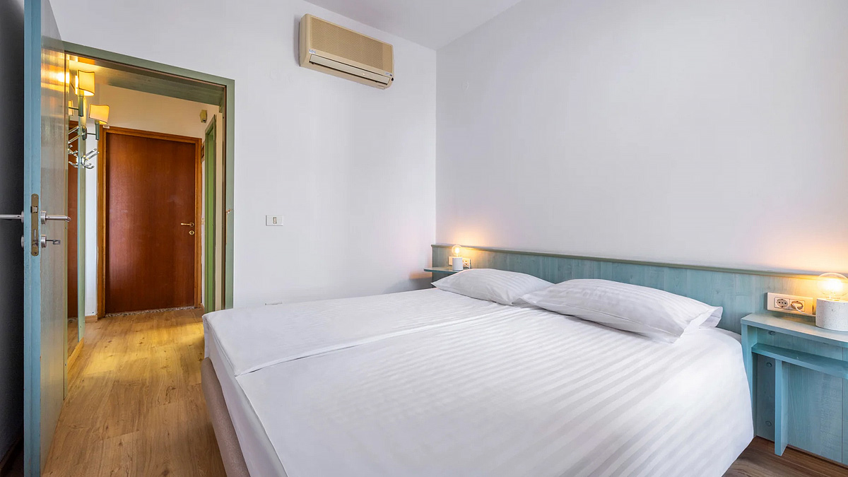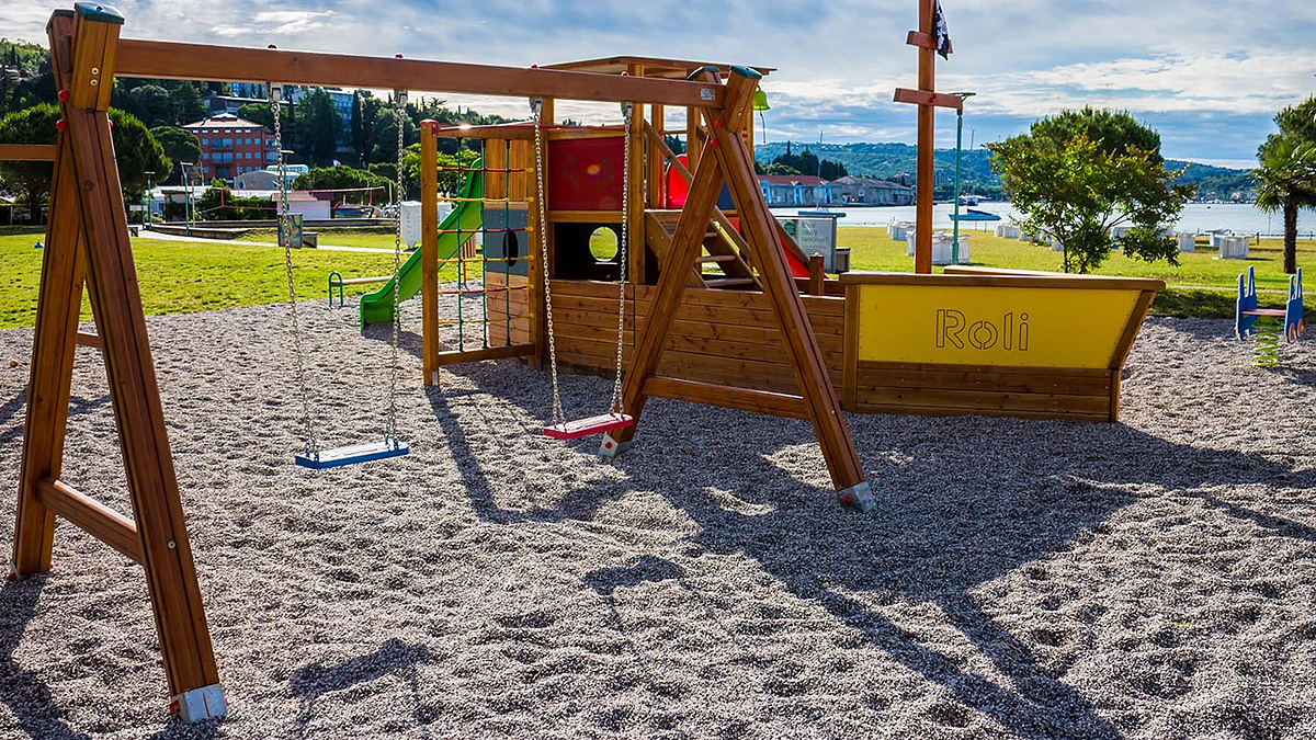 krytý bazén s mořskou vodou v hotelu Histrion, venkovní bazén, dětský bazének a vstup na pláž u hotelu Vile Park (hosté apartmánů mají vstup do bazénů zdarma)