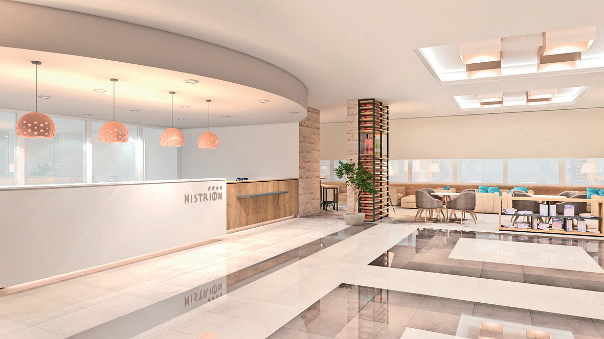 Hotel Histrion je součástí řetězce St. Bernardin Hotels, kam spadají také hotely Vile Park a Grand hotel Bernardin, které se nacházejí v bezprostřední blízkosti hotelu Histrion. Hotel disponuje více než 270 pokoji s výhledem na moře. Celý areál prošel rekonstrukci v roce 2020 včetně venkovního bazénu s mořskou vodou.