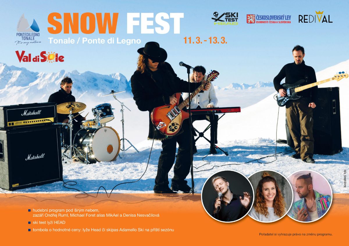 Na závěrečný týden jarních prázdnin jsme pro vás naplánovali hudební akci na sjezdovce v Passo Tonale. Skvělé březnové lyžování vám zpestří koncert zpěváků Ondřeje Rumla a Michaela Foreta pod otevřeným nebem v baru Redival, kde se též podává oblíbený uvítací přípitek.