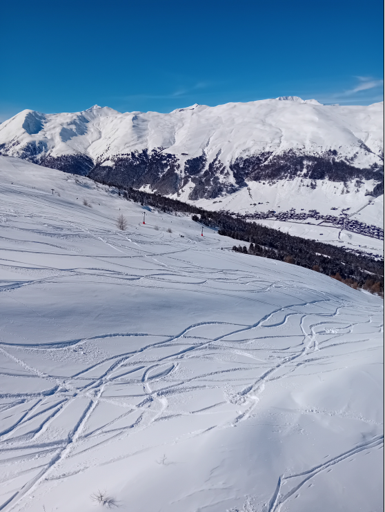 V oblasti Livigna v posledních 3 dnech napadlo kolem 20 cm nového sněhu. Na vrcholech (Mottolino a Carosello) nyní máme 130 cm sněhu, v údolí 85 cm sněhu. Teploty se přes den pohybují kolem 7 °C a v noci klesají až na -5 °C.