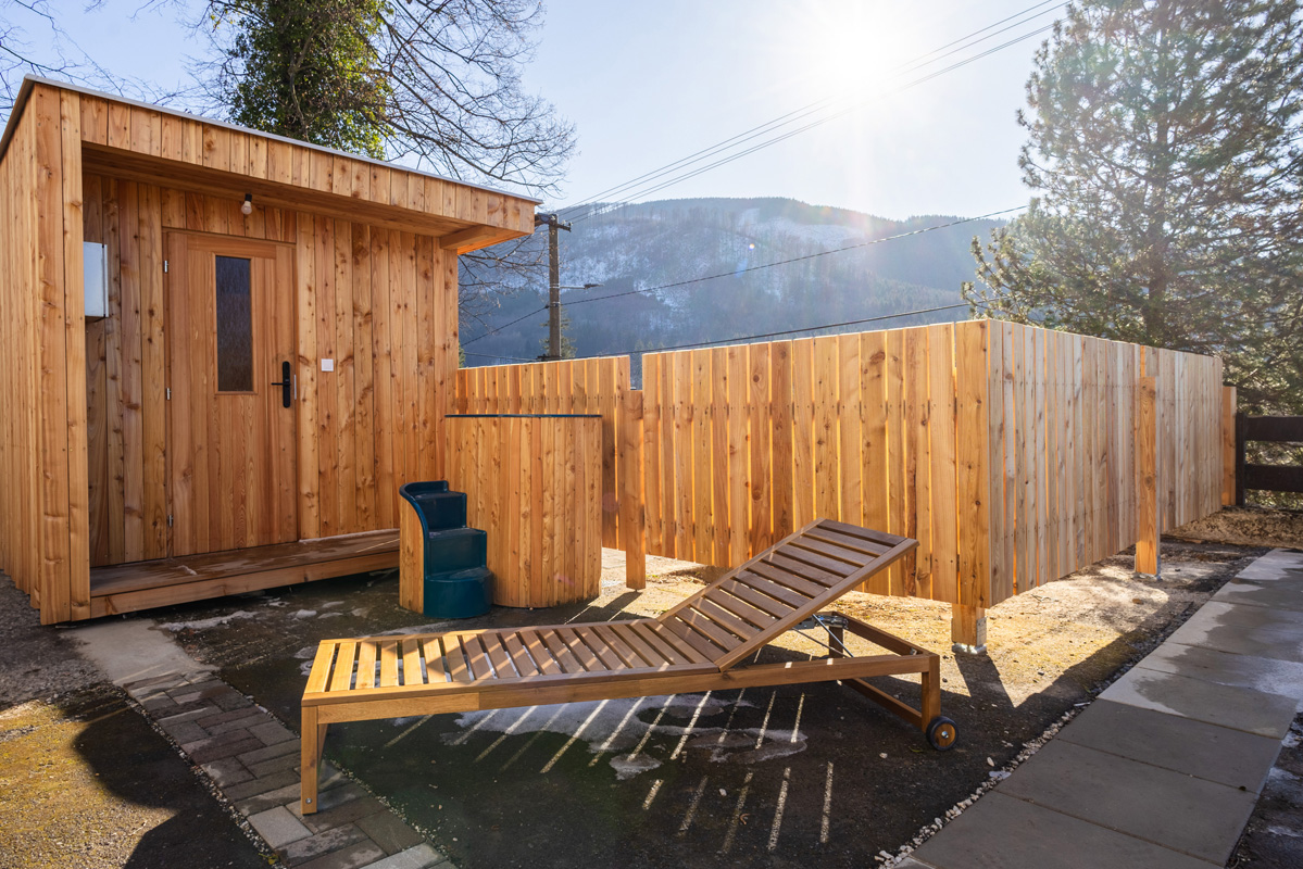 recepce, bar, restaurace, konferenční místnosti s projekční technikou, úschovna zavazadel, lyží i kol, wi-fi připojení k internetu, venkovní altánek, vyhrazené parkoviště