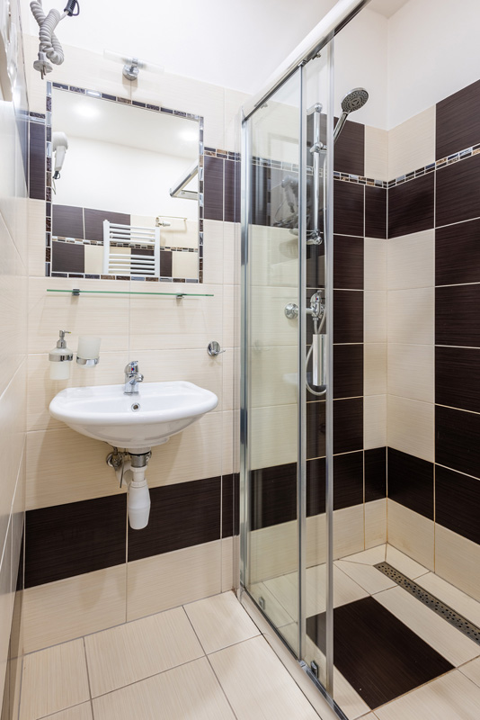 pokoj s manželskou postelí či 2 samostatnými lůžky s možností 1 přistýlky, sociální zařízení (pokoje jsou umístěné ve vyšších patrech)