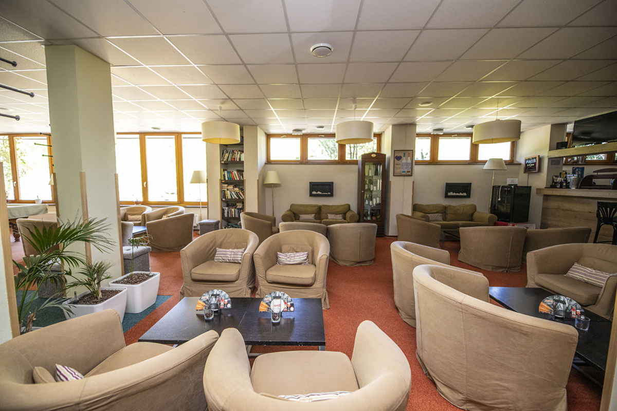 recepce / lobby s knihovnou, restaurace, jídelna, bar, společenská místnost, kongresový sál* až pro 70 osob s projekční technikou, seminární místnost*, sluneční terasa s posezením, dětská herna, dětské hriště s trampolínou, místnost s herními automaty a air hockey, wi-fi připojení k internetu ve většině společných prostor, úschovna lyží, místnost pro úschovu zavazadel, výtah (neobsluhuje všechny patra), vyhrazené parkoviště *