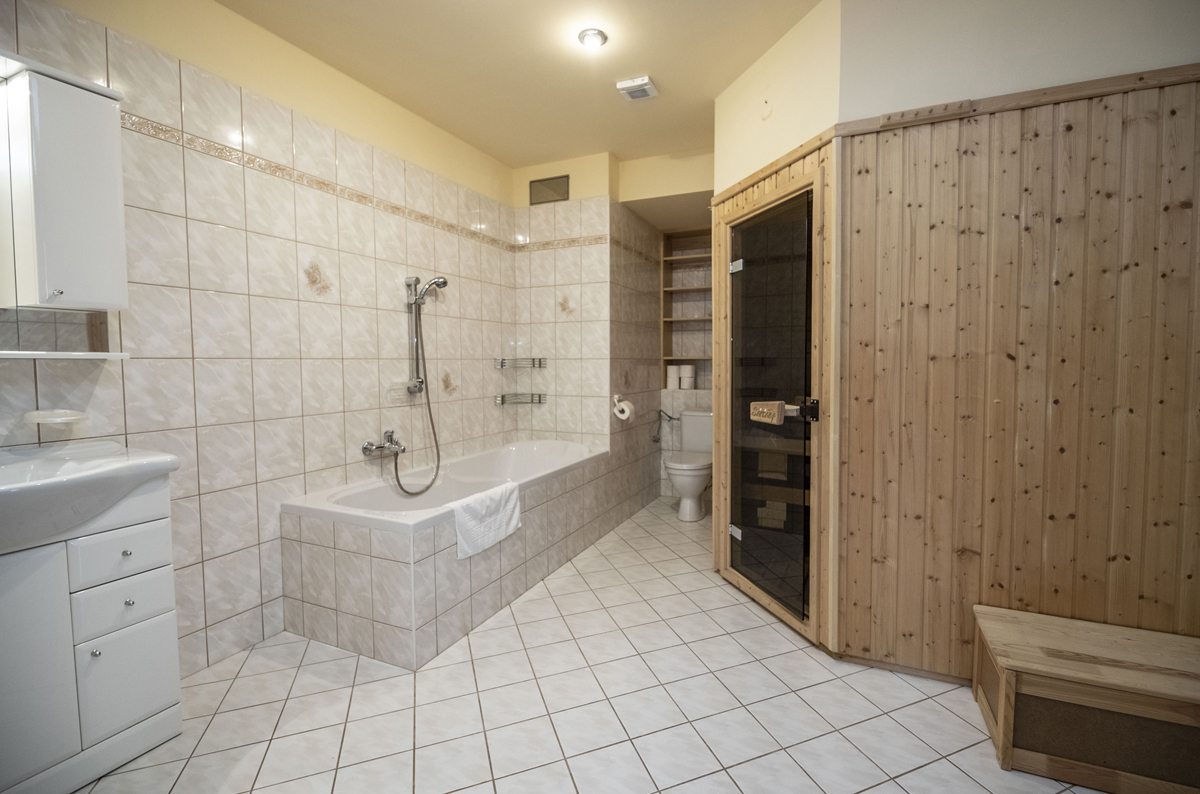 • za poplatek hotelové wellness centrum s finskou a infra saunou a vířivou vanou