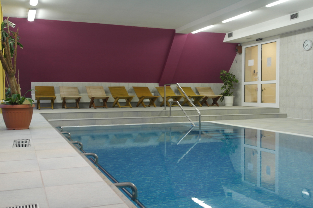 bazén 32 m² s lehátky, finská sauna*, pára*, infrakabina*, solná jeskyně*, masáže*, beauty procedury*, posilovna
