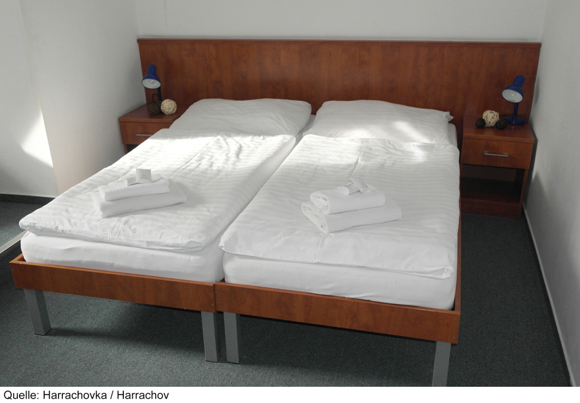 pokoj s manželskou postelí se zpravidla oddělitelnými lůžky a případně rozkládacím gaučem pro 1 osobu či přistýlkou, sociální zařízení